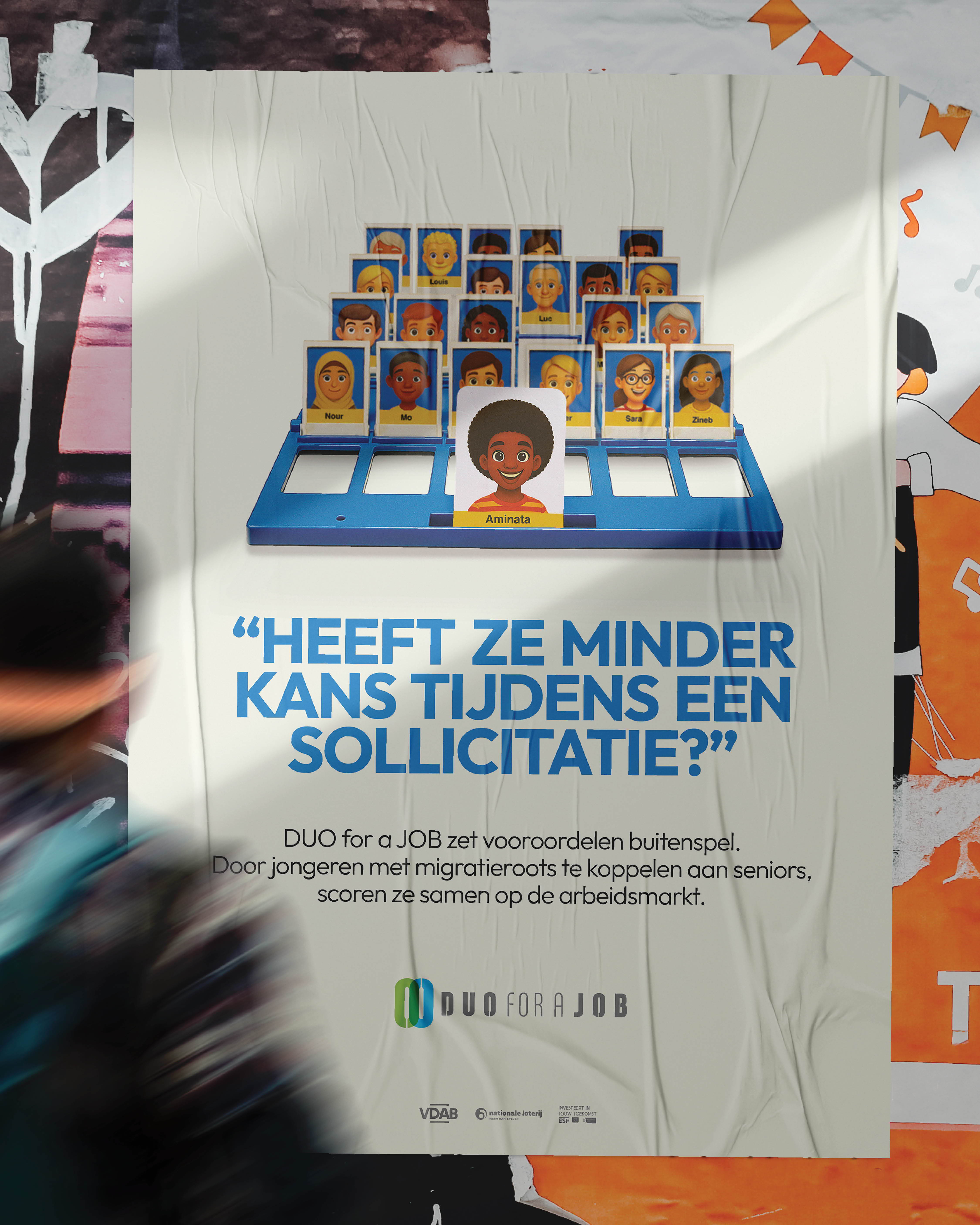 De arbeidsmarkt is geen spelletje. Toch niet als je een opvallend kenmerk hebt zoals een ander kleurtje, een vreemde taal of een atypische achtergrond. Duo for a job doet daar iets aan, door mensen mét privileges te koppelen aan mensen zonder, zodat die vooroordelen sneller wegsmelten en iedereen met dezelfde kansen overblijft aan het eind.